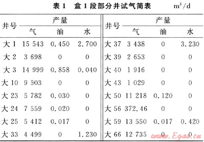 表1給出了盒1段氣層部分生產(chǎn)井的試氣結(jié)果,從結(jié)果中可以明顯地看出,盒1段儲層的絕大部分井不產(chǎn)水,只要少部分井微量產(chǎn)水,微產(chǎn)水量不會對氦氣泡沫欠平衡施工造成影響。