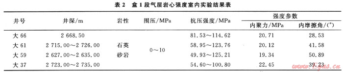 為了研究盒1段氣層欠平衡水平井在砂巖內(nèi)鉆進時的井壁穩(wěn)定性問題,對盒1段氣層直井橫向取心后,進行了巖石力學實驗。