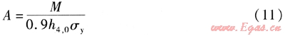 底板計算截面所需的鋼筋截面積A的計算式為: