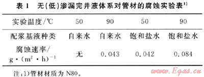 從實(shí)驗(yàn)結(jié)果可知,淡水配制的無(低)滲漏完井液體系對(duì)N80管材基本沒有腐蝕,用飽和鹽水配制的無(低)滲漏完井液體系腐蝕很小,不影響管材的正常壽命。