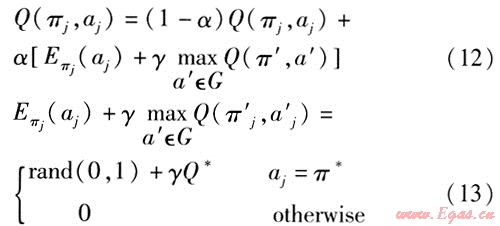 Eπj(aj)——螞蟻在狀態(tài)πj時采取行為aj獲得的瞬時回報