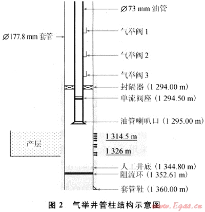 4) 管柱結構為閉式氣舉管柱,管柱可靠,有利于作業(yè)施工過程中的油層保護和管柱狀況檢查。
