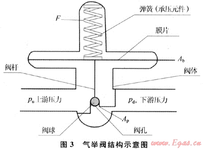 在封隔器以上的最下一級氣舉閥為工作閥,其他則為排液閥。排液閥在油井投產初期當油套環(huán)空排液時工作,地面高壓氣舉氣流進工作閥后,油管內壓力大幅下降,套管內注氣壓力也相應下降,排液閥隨即關閉,停止工作。工作閥選用BK空閥,把正常的氣舉閥(圖3)卸開取出閥芯(彈簧、膜片、閥桿、閥球)即為空閥,其特點是保證氣舉閥常開,當地面注氣壓力在一定范圍波動時,氣舉工作閥不受影響,可保持連續(xù)注氣,同時避免了注氣點上移問題,保證了氣舉井平穩(wěn)生產[4]。