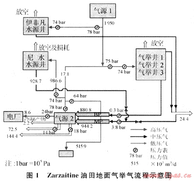 1) 阿爾及利亞Zarzaitine油田氣舉采油工藝技術先進可靠,地面供氣氣源雙套系統(tǒng),保證了該油田長期穩(wěn)定氣舉采油生產。
