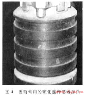 從對井場硫化氫檢測傳感器的調(diào)研結果知道,目前井場常用的硫化氫傳感器檢測膜都凹進去的,四周的硫化氫并不容易進入檢測膜,它主要是靠硫化氫在傳感器下部堆積到一定程度后才進入到傳感器探測面,而在有風的環(huán)境,這種檢測形式會造成測量數(shù)據(jù)不準甚至測量不出有硫化氫,容易貽誤大好時機。圖4所示的是現(xiàn)場應用最多的國外生產(chǎn)的硫化氫傳感器。