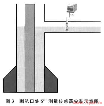 主要存在H2S、HS-、S2-3種形式。鉆井液pH值升高,S2占的比例就相應變大,同時如果硫化氫跟強堿相比量很少,主要形成的也是S2-形式,因此初次進入井筒的硫化氫主要形成的是S2-形式。在普光氣田鉆井液的pH值一般介于9.5~10.5,故可以通過測量喇叭口處泥漿里的含S2-的情況,結合大氣環(huán)境的硫化氫監(jiān)測值,對井場硫化氫情況進確定,尤其對剛剛進入井筒的硫化氫,這種測量克服了目前井場只測大氣中硫化氫的缺點。目前國內(nèi)已有成熟的S2-在線實時監(jiān)測傳感器(圖3)。