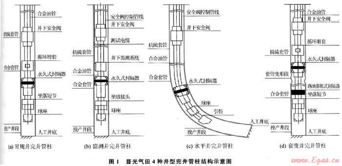 1) 普光高酸性氣田設(shè)計采用的常規(guī)井、監(jiān)測井、水平井、套變井等4種完井管柱,充分考慮到了高酚眭氣田的特殊安全要求,設(shè)計科學(xué),針對性強(qiáng)。