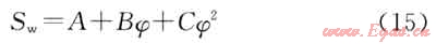 4) 利用測井計算的孔隙度,根據(jù)低侵巖心分析的含水飽和度和孔隙度二項式回歸公式計算,其公式為:
