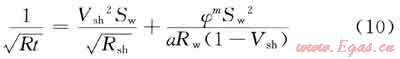 1) 根據(jù)測井原理,利用孔隙度和電阻率曲線確定含水飽和度(西門杜公式),其公式為: