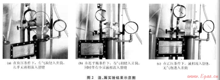用清水加CMC為液相,氮?dú)鉃闅庀?,?shí)驗(yàn)觀察在鉆遇裂縫性儲(chǔ)層時(shí),氣、液兩相的溢、漏現(xiàn)象。實(shí)驗(yàn)結(jié)果如圖2所示。
