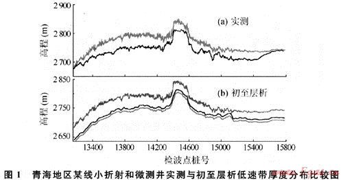 然而,利用初至波層析反演的近地表結構和實際測量的近地表結構相比較,其結果又如何呢?從圖1可以看到,除測線兩端附加段是外推的、誤差比較大以外,實測厚度與層析結果大體相當。