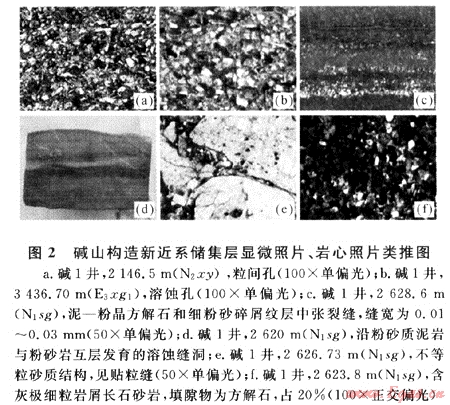 儲(chǔ)層巖性為泥質(zhì)粉砂巖、粉砂巖、細(xì)砂巖、泥灰?guī)r和灰質(zhì)砂巖類,沉積物粒級(jí)偏細(xì)。儲(chǔ)集空間以原生粒間孔隙為主,存在部分溶蝕孔隙和溶蝕裂縫(圖2)。