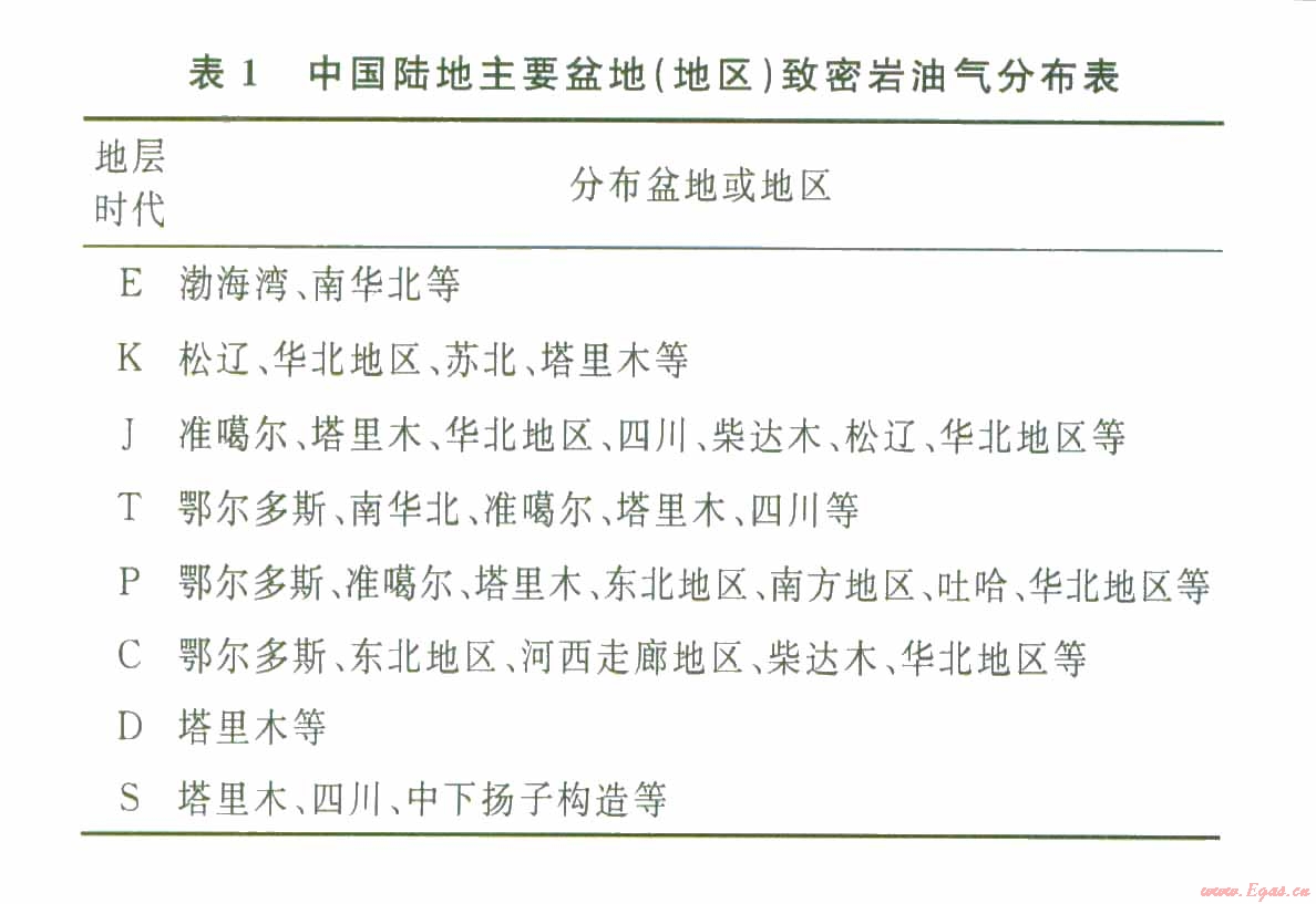 1)依據目前的勘探成果,研究認為,中國致密巖油氣具多層位富集的特點——志留系、泥盆系、石炭系、二疊系、三疊系、侏羅系—白堊系、古近系等均有分布(表1)。