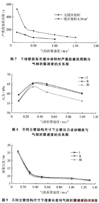 2.5 立管結構尺寸及增加下傾管段緩沖容積對流動特性的影響