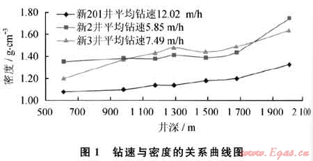 通過(guò)理論分析和現(xiàn)場(chǎng)實(shí)際所鉆井資料分析可以看出,在同一地質(zhì)條件、同一地層壓力和同一鉆井液類型的前提下,鉆井液密度越高鉆井機(jī)械鉆速越低。X201井鉆井液密度最高僅為1.30g/cm3,其鉆井速度最高達(dá)到了12.64m/h,如圖1所示。