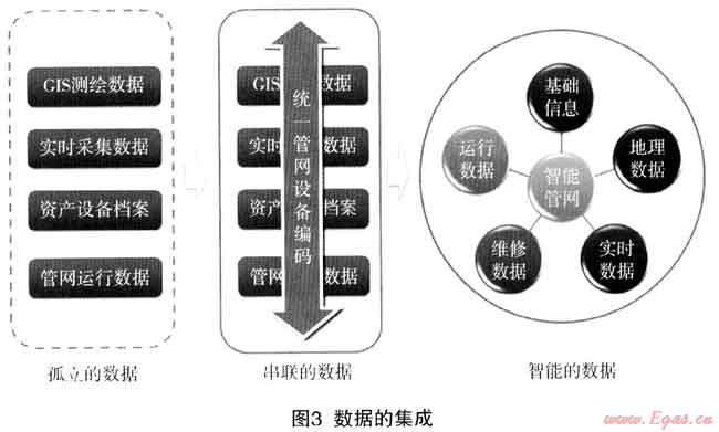 從孤立的數(shù)據(jù)到可以串聯(lián)的數(shù)據(jù)最終達到共享數(shù)據(jù)中心智能數(shù)據(jù)的目標,真正實現(xiàn)管網(wǎng)數(shù)據(jù)的完整性、可靠性、關(guān)聯(lián)性、有效性、實時性。從數(shù)據(jù)的集成到?jīng)Q策的智慧,是各個行業(yè)企業(yè)管理信息化發(fā)展的必然途徑和最終目標。