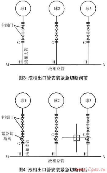 根據(jù)《氣瓶安全監(jiān)察規(guī)定》:《氣瓶充裝許可證》的有效期為4年;有效期滿前,氣瓶充裝單位應(yīng)當(dāng)向原審批部門申請(qǐng)更換《氣瓶充裝許可證》。我公司的液化石油氣儲(chǔ)灌站于2011年7月向河北省質(zhì)監(jiān)局提出《氣瓶充裝許可證》的換證申請(qǐng);河北省特種設(shè)備學(xué)會(huì)于2011年11月對(duì)液化石油氣儲(chǔ)灌站進(jìn)行了現(xiàn)場(chǎng)評(píng)審。評(píng)審專家根據(jù)新版《城鎮(zhèn)燃?xì)庠O(shè)計(jì)規(guī)范》中關(guān)于對(duì)“液化石油氣儲(chǔ)罐上安全閥件的配置”,要求我液化石油氣儲(chǔ)灌站3座400m,的液化石油氣球罐的氣相管和液相出口管上的根部主閥門下加裝緊急切斷閥。