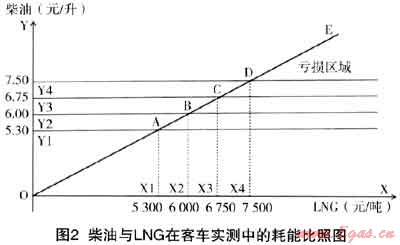 到目前為止,全國(guó)已經(jīng)投產(chǎn)的LNGX:廠超過(guò)40家,在建和準(zhǔn)備前期手續(xù)的超過(guò)30家,預(yù)計(jì)到“十二五”末期,LNG工廠總產(chǎn)能將超過(guò)1000萬(wàn)t。全國(guó)已經(jīng)投產(chǎn)的接收站共有5個(gè),在建的接收站有2個(gè)。十二五”期間,我國(guó)將建設(shè)LNG接收站17座,年接收能力超過(guò)5000萬(wàn)t。LNG槽車運(yùn)輸能力隨著LNG市場(chǎng)覆蓋率的增加而大幅提高,擁有超過(guò)100輛槽車運(yùn)載能力的企業(yè)不少于3家,小型LNG槽船也將在近期內(nèi)投入市場(chǎng)。國(guó)內(nèi)LNG利用初期主要是通過(guò)衛(wèi)星站形式供應(yīng)小區(qū)、大型工業(yè)及小規(guī)模城市,進(jìn)口LNG因?yàn)椴少?gòu)量大主要供應(yīng)電廠及大中城市。根據(jù)跟車實(shí)測(cè),客車百公里消耗燃料量以公斤為計(jì)量單位的LNG數(shù)值和以升為計(jì)量單位的柴油數(shù)值是近似的。圖2可以反映兩種燃料實(shí)際使用的成本差距。過(guò)去18個(gè)月,華東地區(qū)LNG衛(wèi)星站到岸均價(jià)維持在5500元/t左右。至少25%的價(jià)格差距促使LNG將逐漸擠占汽柴油的市場(chǎng)份額,重型卡車、長(zhǎng)途客車以及船舶LNG利用市場(chǎng)將會(huì)呈現(xiàn)爆炸式增長(zhǎng)。單一的大型LNG倉(cāng)儲(chǔ)業(yè)務(wù)國(guó)內(nèi)尚未有投資人涉及。LNG冷能利用是能源綜合利用的一個(gè)方向。