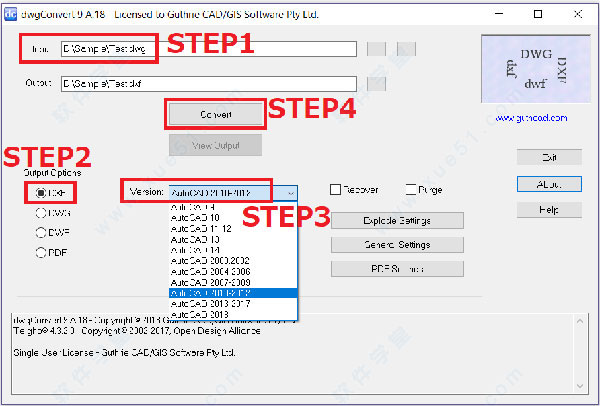 2、將DWG轉(zhuǎn)換為DWG,將DWG轉(zhuǎn)換為DXF,將DXF轉(zhuǎn)換為DWG。還將AutoCAD轉(zhuǎn)換為PDF