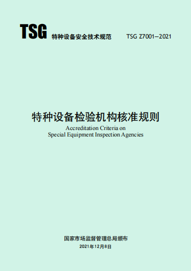 《特種設(shè)備檢驗機(jī)構(gòu)核準(zhǔn)規(guī)則》TSG Z7001-2021