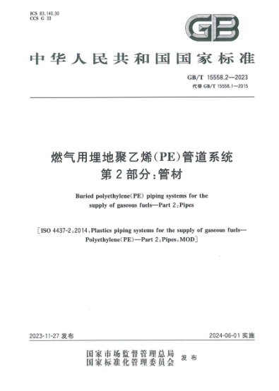 燃?xì)庥寐竦?a href=http://www.tyzmed.com/e/tags/?tagname=%E8%81%9A%E4%B9%99%E7%83%AF target=_blank class=infotextkey>聚乙烯(PE)管道系統(tǒng) 第2部分:管材GB/T 15558.2-2023